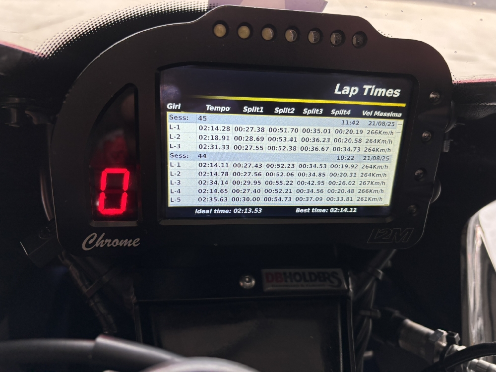 Už po druhém vyjízdu na trať vše naznačovalo, že by se to mohlo povést. Čas ukázal 2:15,9 :). Jako vždy dobrá parta v boxu a Mírova preciznost nás musí dovést k cíli. Nemůžeme zapomenout ani na nový povrch na závodní dráze. První den jsme končili časem 2:15,5. Mechanik si zasloužil dobrou večeři a slíbil jsem mu, že po desáté hodině večer nebudu žrát chipsy abych šustěním sáčku nerušil. (už chce taky mít svůj klid). Máme tady druhý den a čeká nás kvalifikace. Má možná i zapršet, ale budeme věřit, že počasí vydrží. V druhé rundě se povedlo zajet 2:14:1. Mechána makal na jedničku a vše probíhalo podle plánu. Zajeli jsme ještě pár rychlých kol s časy 2:14, ale bohužel jen ideální kolo ukazovalo 2:13:5. Provoz na trati byl opravdu velký.