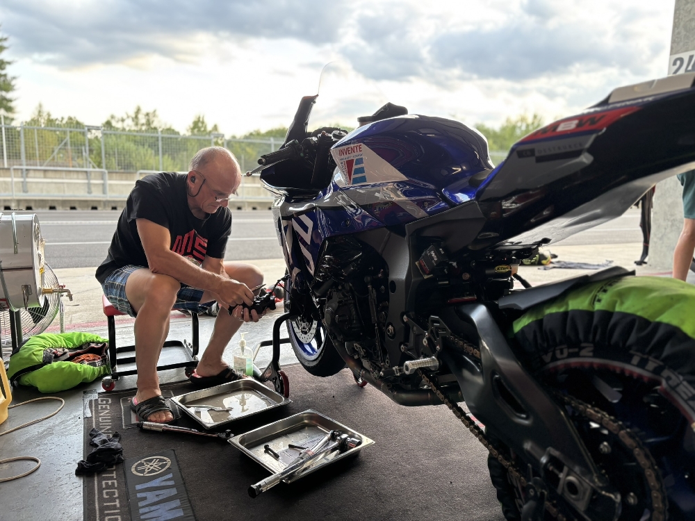 Bohužel na závod byla osychající dráha a zvolené mokré pneu nebyla ta správná volba. Předpoklad byl, že ještě zaprší, ale to se nestalo. Protrápený závod a v půlce jsem radši zajel, abych to někde nezahodil. I tak skvělé časy, spoustu zážitků a radosti. Smutek ze závodu kvůli mokrým pneu na suché dráze, nám nemohl vzít dobré nastavení motorky na suchých podmínkách.