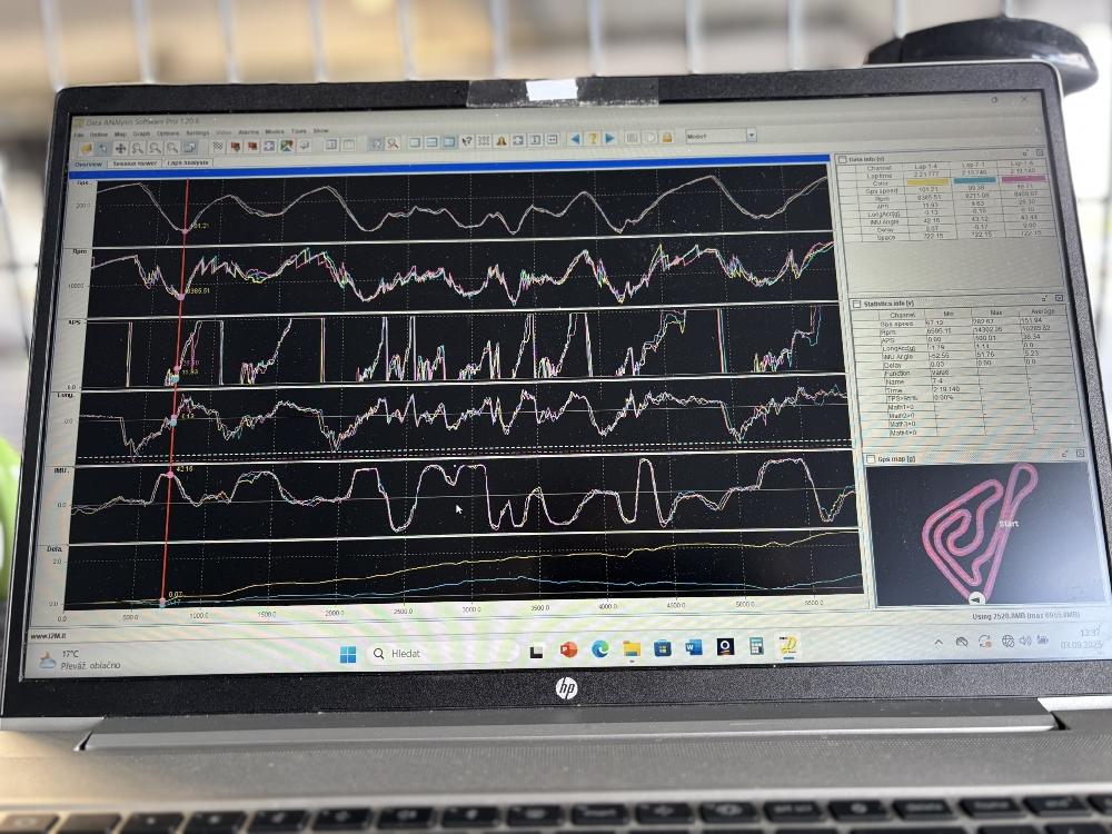První den byl začátek 2:21:7 to bylo seznámení s tratí :). Ve druhém vyjetí už byla spokojenos 2:19:1, počasí přálo tak jen jezdit jezdit jezdit. Čas se povedlo dostat na 2:18:6 jen zadní měkká pneu odcházela hodně rychle. Uvidíme co řekne Míra večer na data až najde čas se na to podívat.